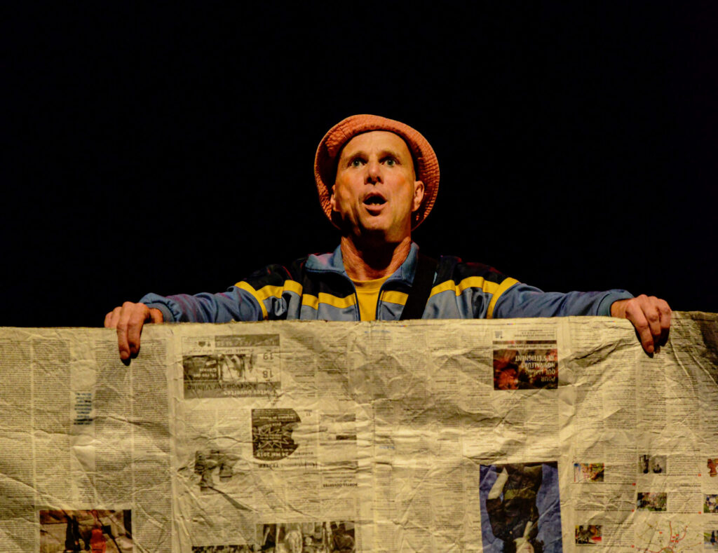 BY SYNCHRONIZING GESTURES AND RECORDED SOUNDS in a frenetic pace, these two modern clowns transcend language barriers to explore what is universal : intention, movement, rhythm, the dance of the body, the heart and the mind.
